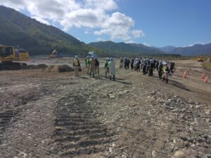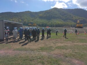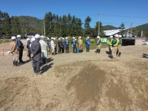 ICT活用モデル工事(草地版)の現場で、令和7年9月30日、情報化施工技術活用の現場研修会を開催しました。
