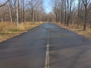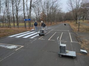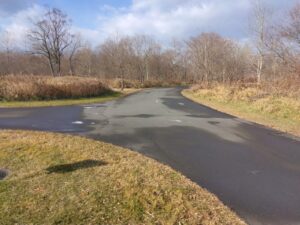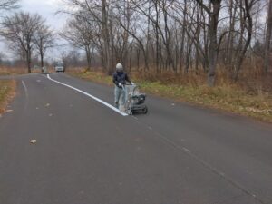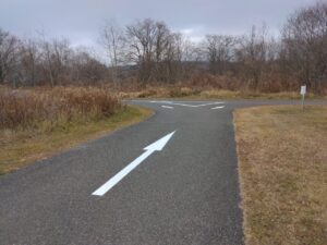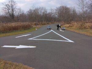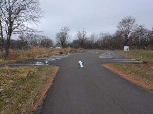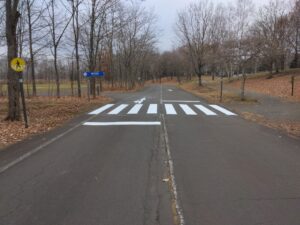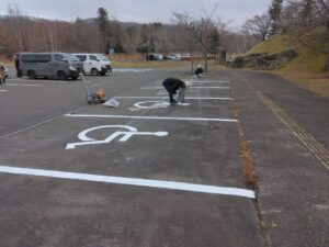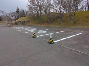 北海道立十勝エコロジーパーク内の園路及び駐車場の区画線(中央線、矢印、横断歩道、停止位置、駐車ライン、身障者マーク等)