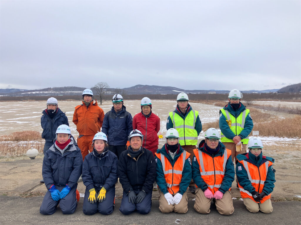 十勝川改修工事の内 利別築堤河岸保護外工事(村上土建開発工業施工)、の2現場合同で、