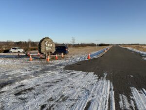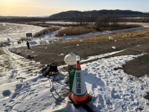 豊頃町内で施工中の、北海道開発局帯広開発建設部発注 十勝川改修工事の内 大森第2樋門下流河道掘削外工事(北土開発施工)、