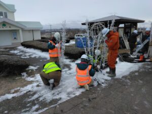 令和7年12月11日、12日、13日、18日の4日間、地域貢献活動の一環としてイルミネーション装飾の設置・撤去作業を行いました。